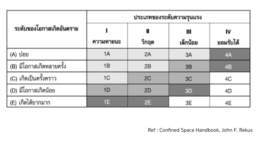 ในที่นี้ผมใช้ตัวอย่างการประเมินความเสี่ยงในที่อับอากาศจาก หนังสือ Confined Space Handbook, John F, Recus